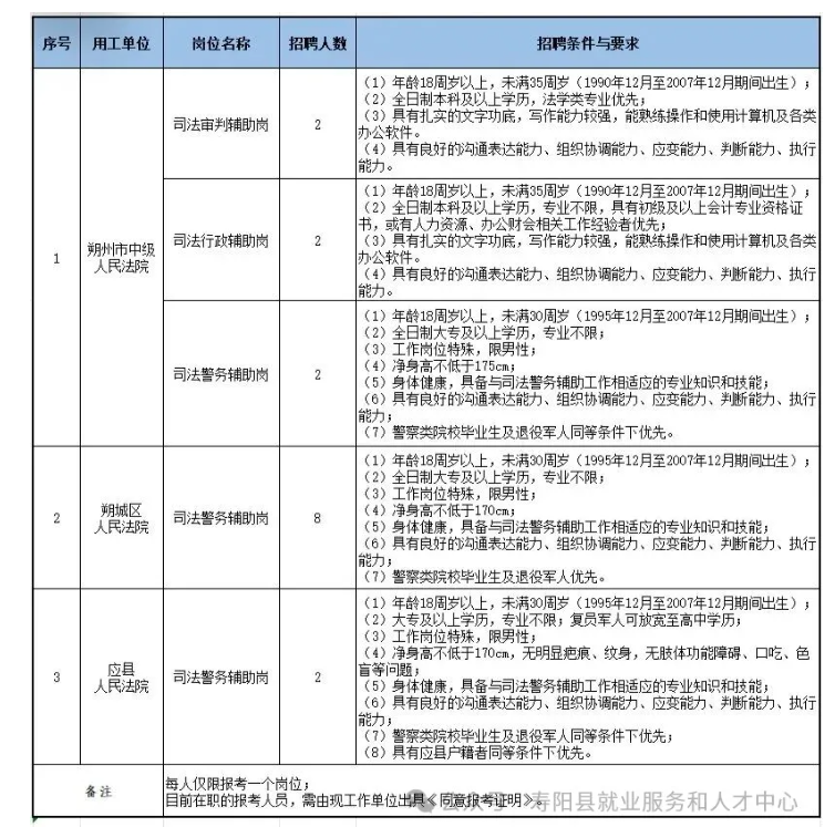 根据工作需要,鑫富源人力资源集团面向社会公开招聘16名(朔州中院6人,朔城区法院8人,应县法院2人)司法辅助人员,现将有关事项公告如下: